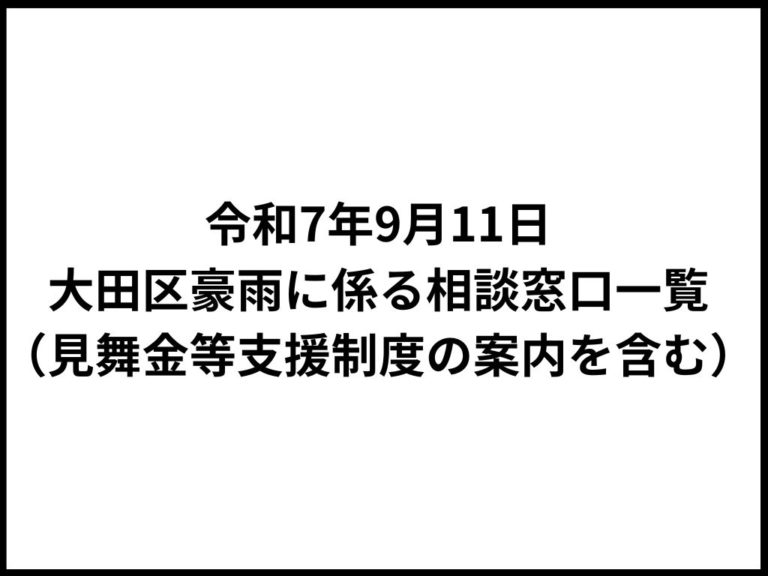 令和7年9月11日大田区豪雨に係る相談窓口一覧(見舞金等支援制度の案内を含む)