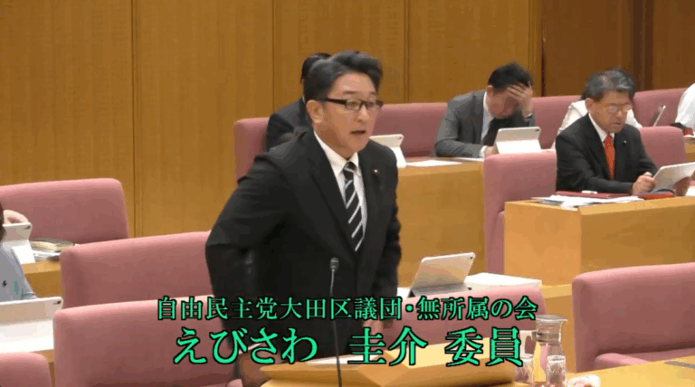 大田区議会 令和4年決算特別委員会にて款別質疑を行いました